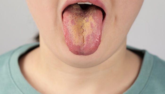 A fungal infection commonly termed thrush is expected to show more after menopause. Red spots or patches of whitish colour that appear on the tongue and inside the mouth are common in this condition.