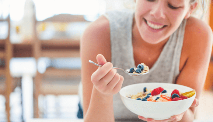 A balanced diet provides essential nutrients for yoga and daily activities.